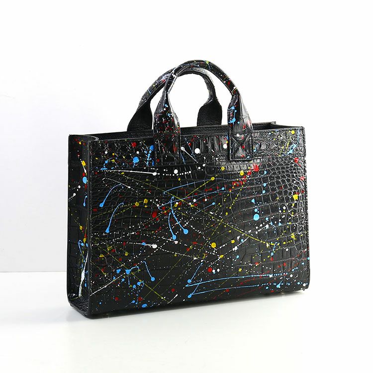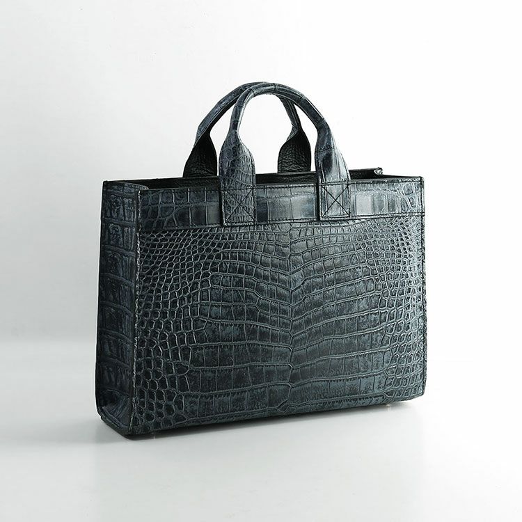 染め込んだ、美しい仕上がりのクロコダイルトートバッグ。