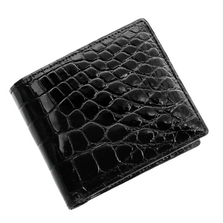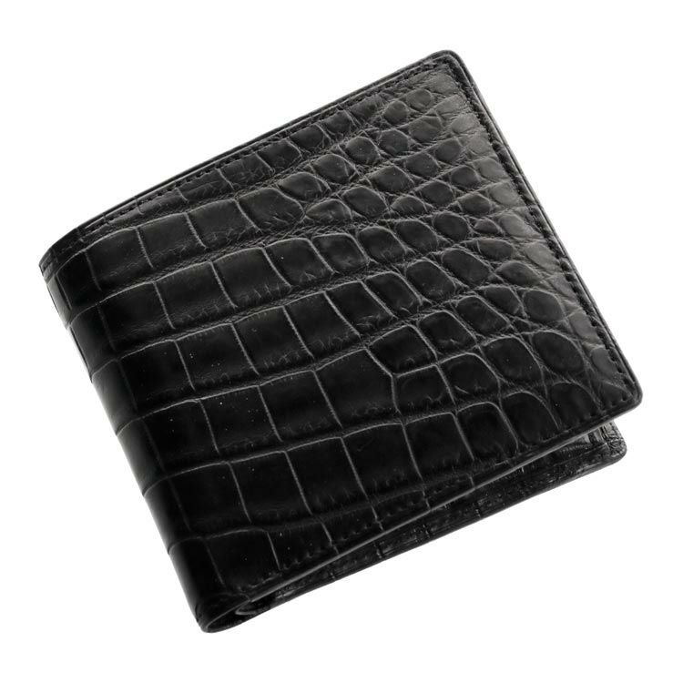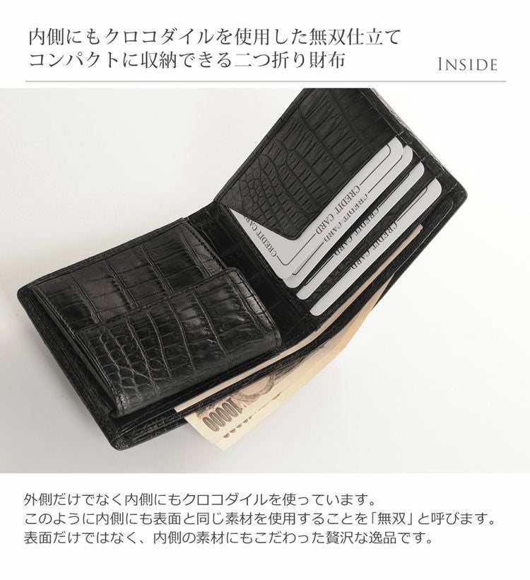 天然皮革 エキゾチックレザー 日本製 クロコダイル 無双 2つ折り財布 メンズ 小銭入れ付き 一枚革 メンズ財布 革 本革 レザー 黒 折り財布 財布 男性 ナイルクロコダイル プレゼント ギフト 普段使い 父 ギフト