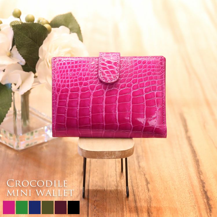 天然皮革 エキゾチックレザー クロコダイル ミニ財布 レディース 本革 無双 シャイニング 加工 一枚革 薄型財布 薄い財布 レディース財布 留め具付き 二つ折り 財布 小銭入れなし レディース コンパクト 二つ折り財布 プレゼント ギフト 春財布 ギフト