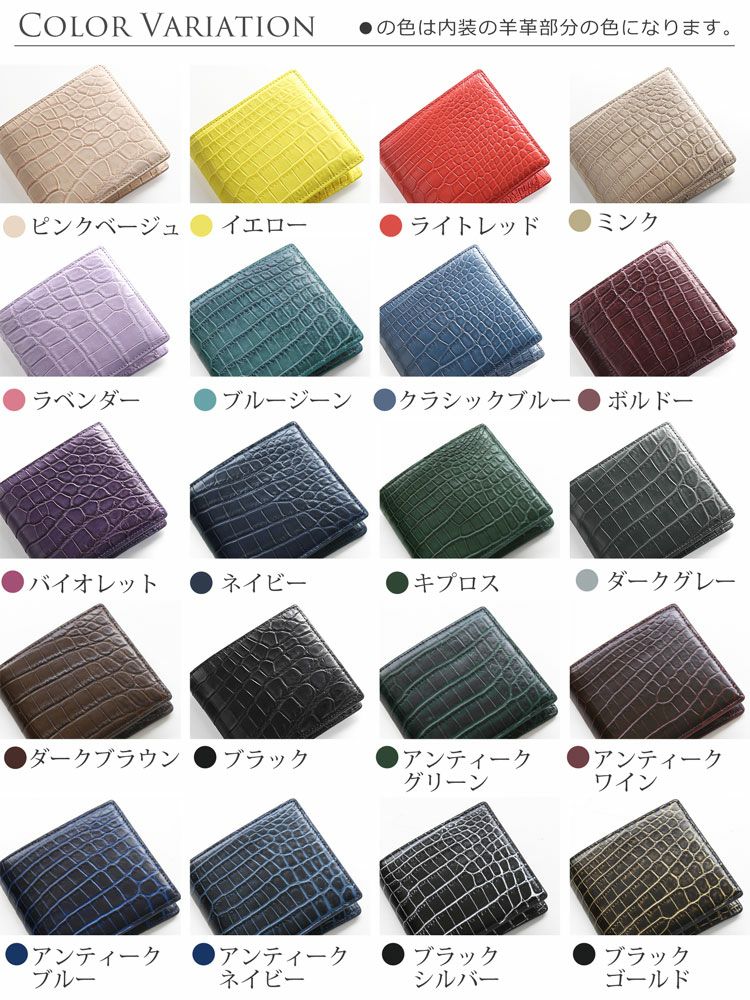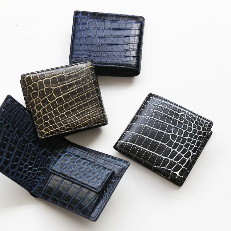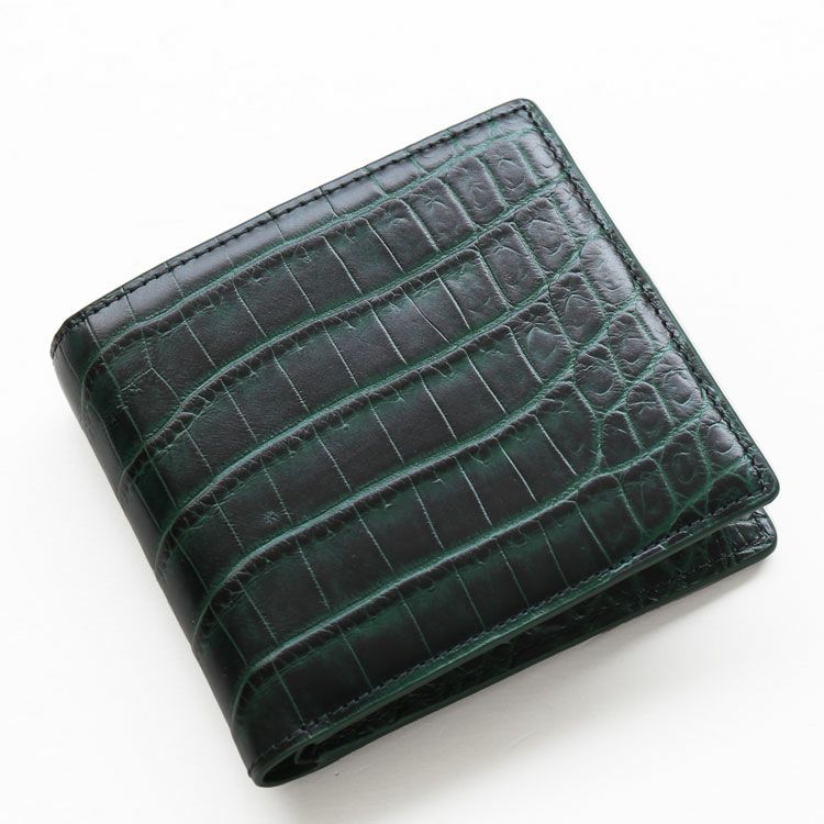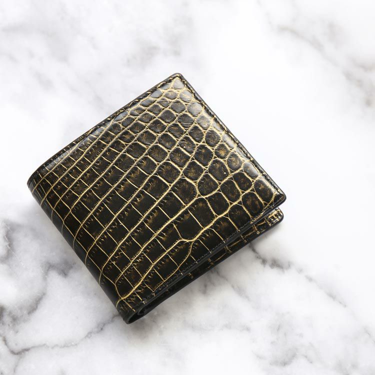 ナイルクロコダイルを一枚革で使った二つ折り財布。