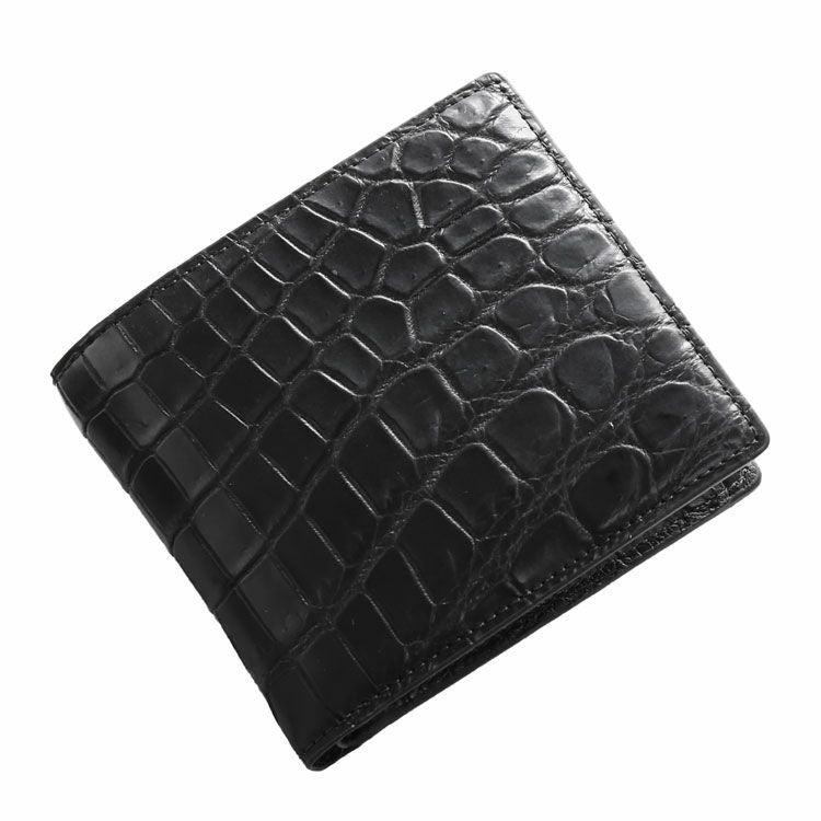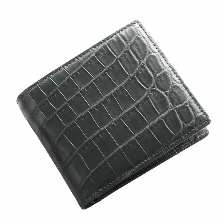 5. クロコダイル 二つ折り 財布 メンズ 本革 無双 マット加工 一枚革 4FA