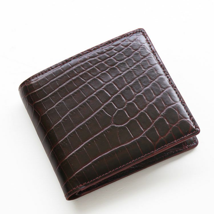 クロコダイル 折り財布 マット 加工 メンズ ボルドー