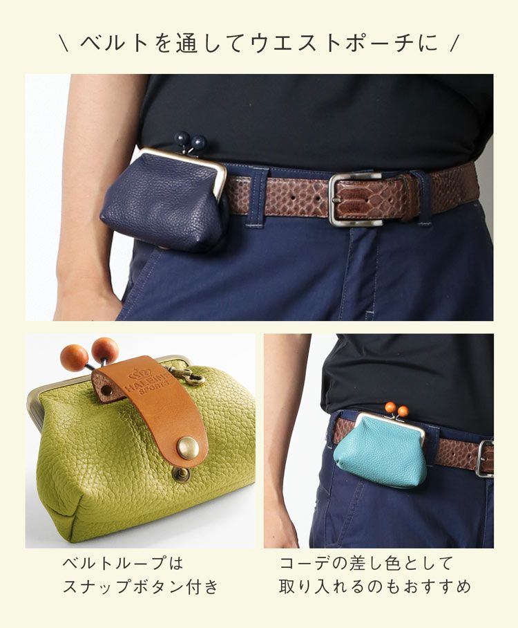 イタリア牛革 がまぐちポーチ ゴルフ 栃木レザー メンズ 日本製 ライム/ライトブルー/レッド/トープ/ネイビー/ブラック 革小物 本革 誕生日 父 プレゼント ギフト