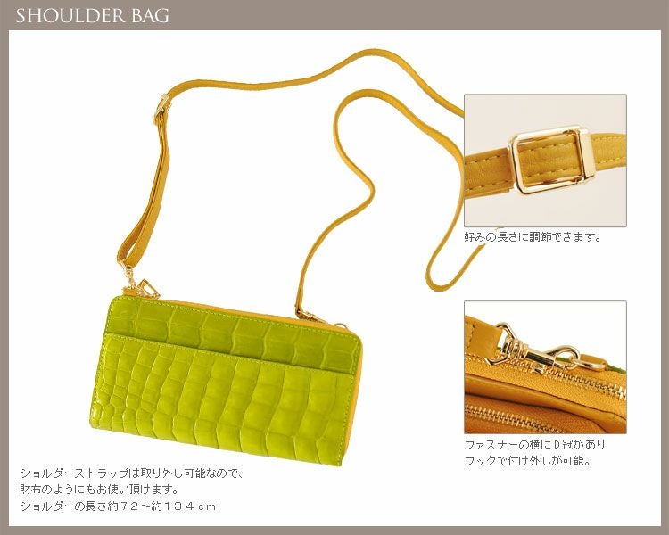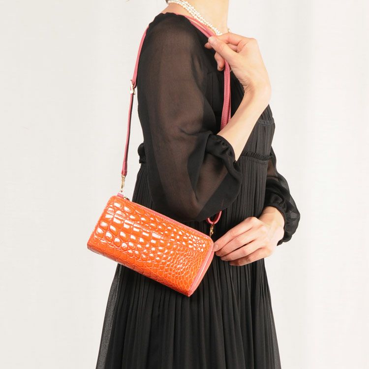 クロコダイル ショルダー バッグ シャイニング加工 トリプルファスナー(No.06000379) |
