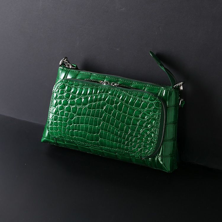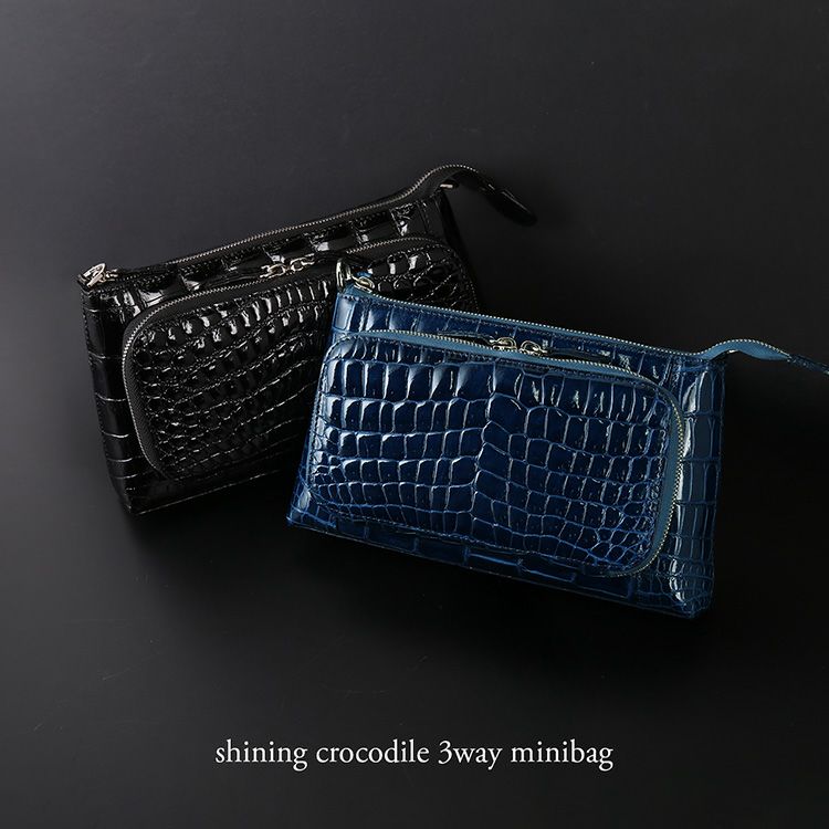 美しく輝くシャイニング加工のクロコダイルを使用。