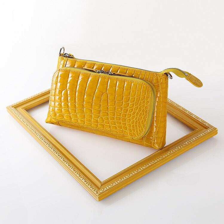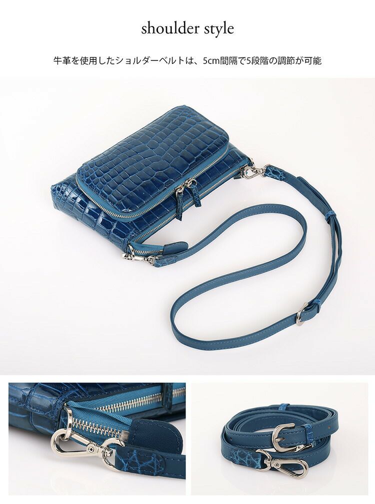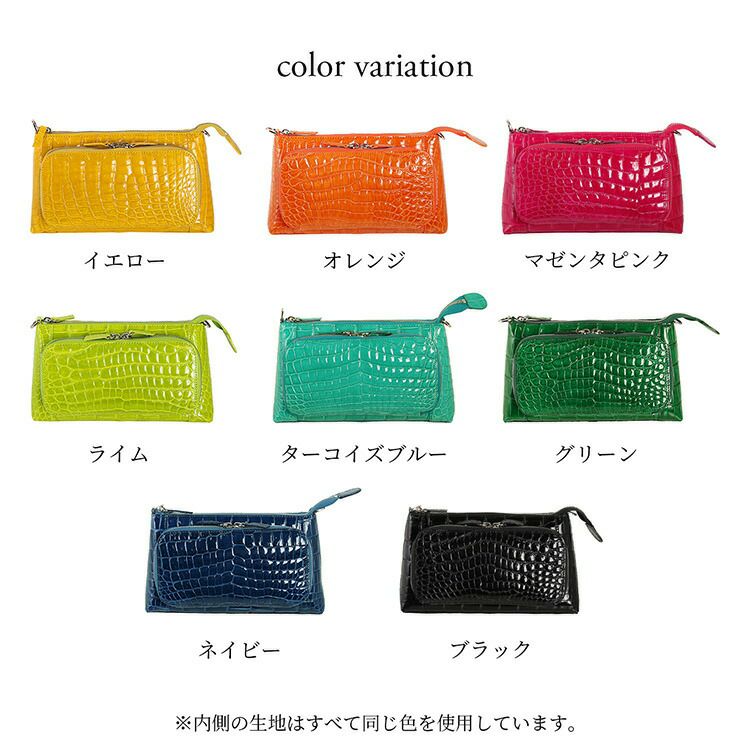 表側:クロコダイル 内装:生地 ショルダーベルト:牛革 |