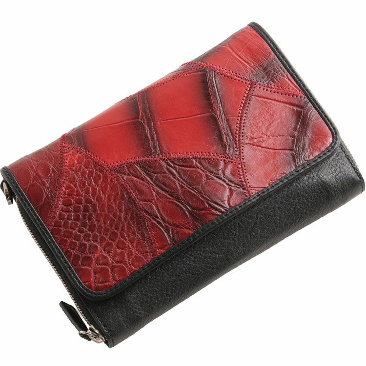 高級皮革のクロコダイルレザーを使用したお財布機能付きポシェット。