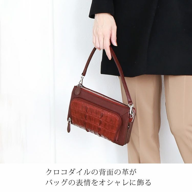 牛革 クロコダイル ホーンバッグ 3WAY ミニバッグ ポシェット レディース 4FA