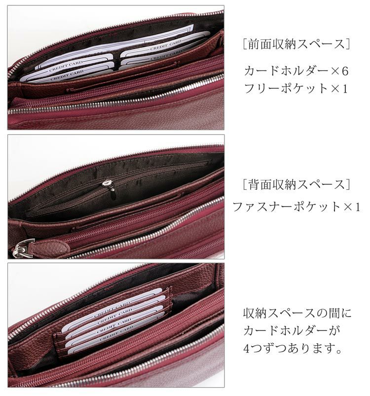 中はカードホルダーやポケットが充実しており賢く整理整頓できるバッグです。