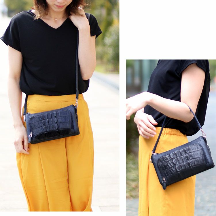 天然皮革 エキゾチックレザー ショルダーバッグ レディース 小さめ 牛革 クロコダイル ホーンバッグ 3WAY ミニバッグ レディース ポシェット 斜め掛け 本革 ワニ革 レザー 大人 クラッチバッグ 革 小さいバッグ お財布ポシェット ギフト ladiesbag mensbag