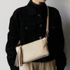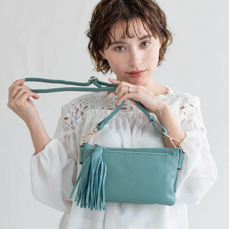 ※キーワード: 黒 ブラック ベージュ オフィス 通勤 ママ 卒業式 入学式 リアルレザー タッセル フリンジ 付き クラッチ 2way 小さい かわいい きれいめ お財布ポシェット 牛革 革 ショルダーバッグ ポシェット ミニバッグ