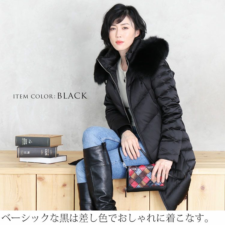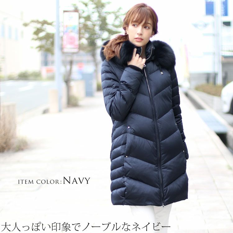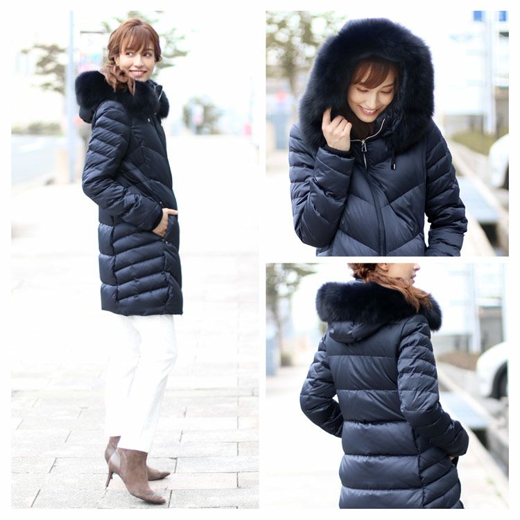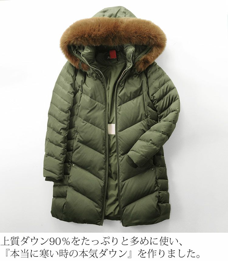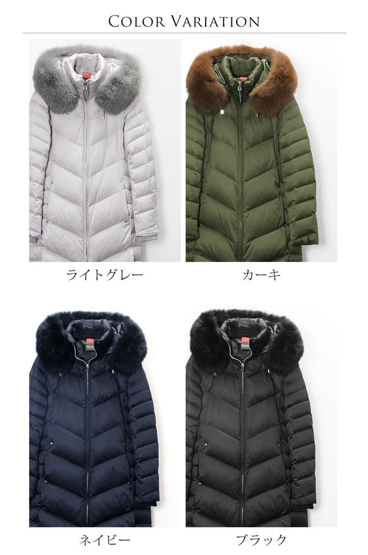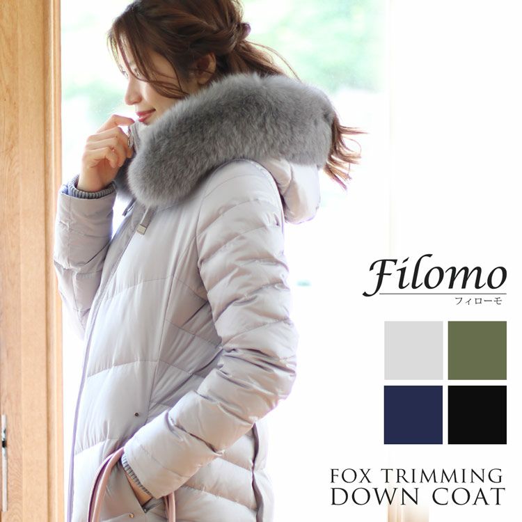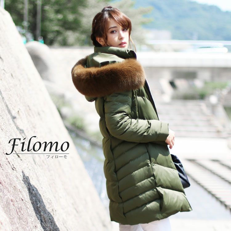 Filomo ダウンコート レディース フード付き フォックスファー襟付き ダウン90% (08000140r) 6F