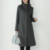 首元からすっきりとしたシルエットになり、 落ち着いた印象でかっこよく着られる スタンドカラーコート。 襟を立てて着られるので、首元までしっかりと暖かい一着。 着丈100cmの長め丈でエレガントな縦長シルエット。 結婚式や卒業式、冠婚葬祭にも使える上品なコートです。 →着丈-5cmのカシミヤ100%スタンドカラーコートはコチラ。