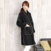 パイピングが可愛いストレッチ素材のラップコート、するんと美しく伸びる着丈93cmのロングコートです。