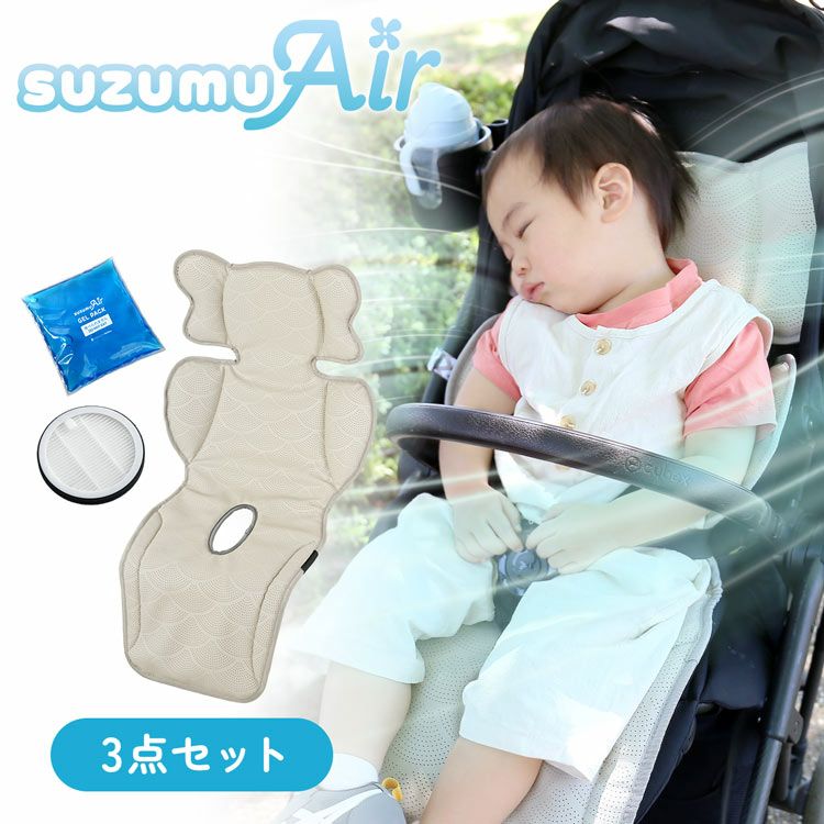 suzumu Air ファン付き ベビーカーシート ベビーカー ファンシート ベビーカー用品 熱中症対策 グッズ 子ども 子供 赤ちゃん 接触冷感 保冷材ポケット付き 暑さ対策 ひんやりグッズ 熱中症対策グッズ 熱中症予防 チャイルドシート