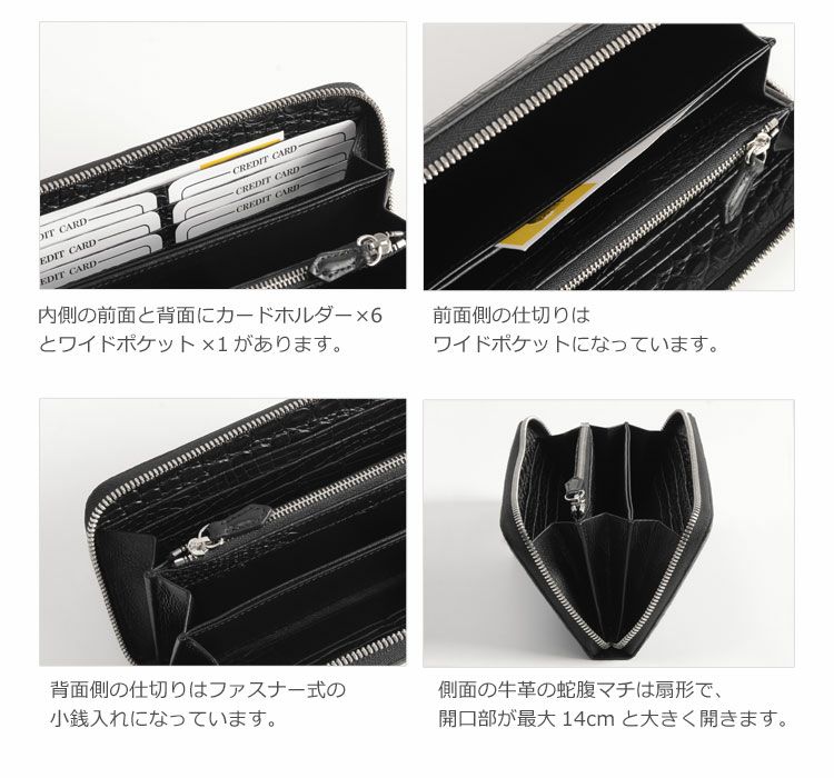 | 備考 | 内側の両外側にスモールクロコダイルを使用しています。 側面や仕切り部分は牛革(本革)で仕立てています。 |