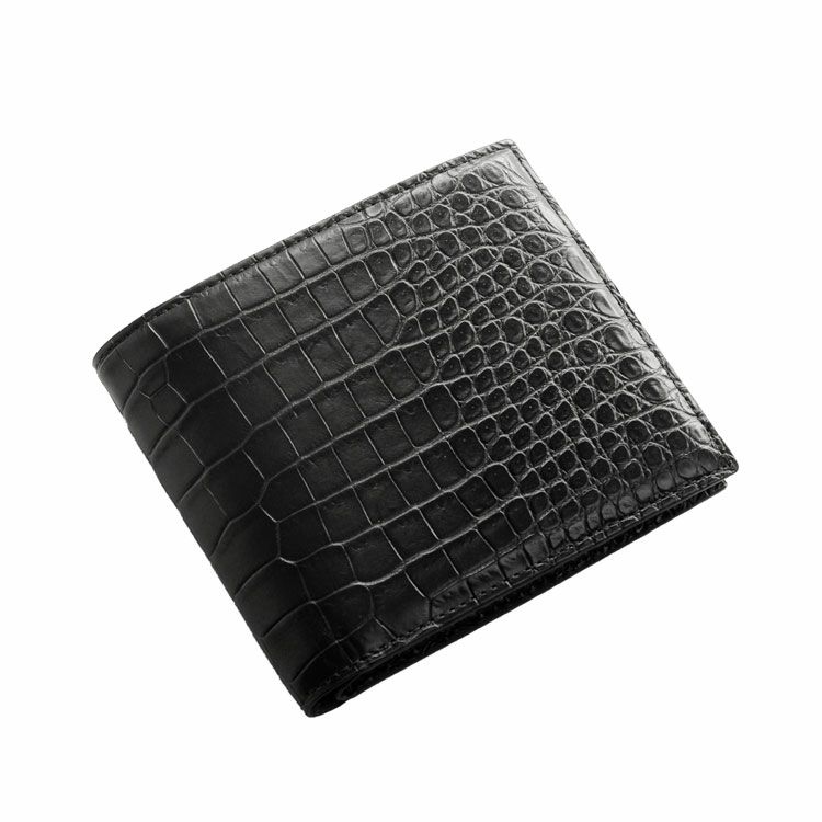スモールクロコダイルで仕立てた二つ折り財布です。