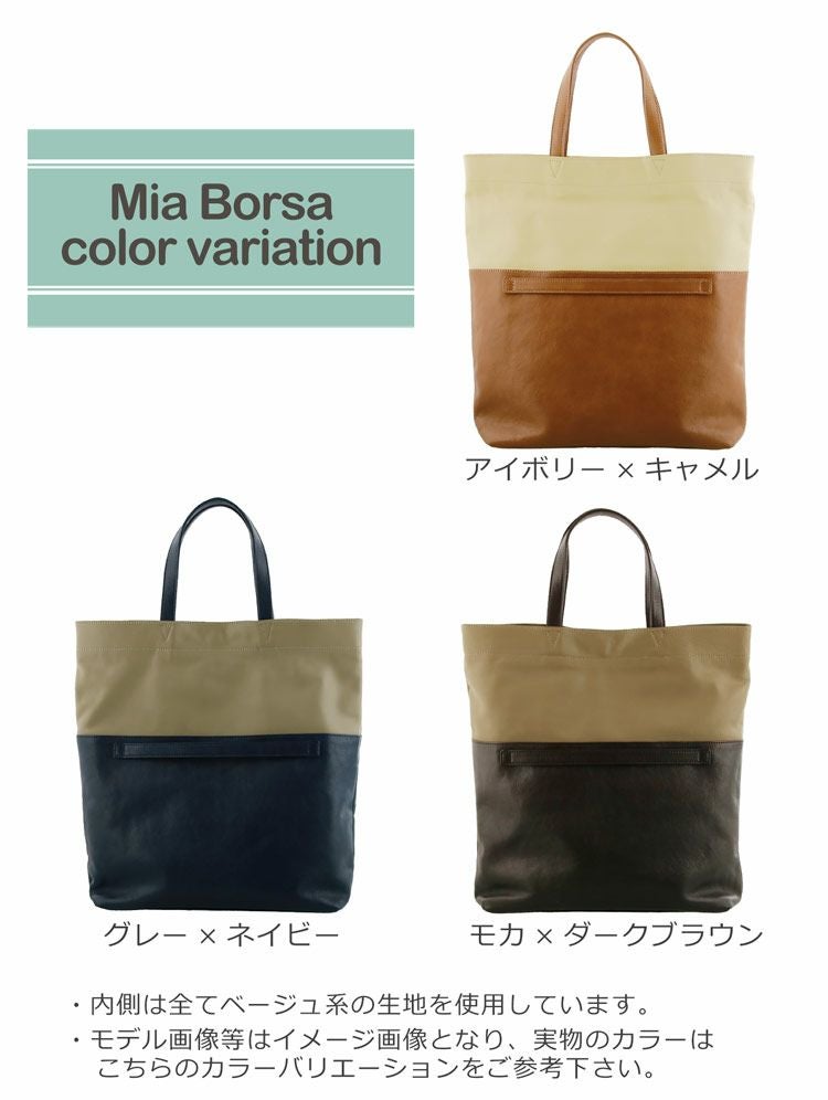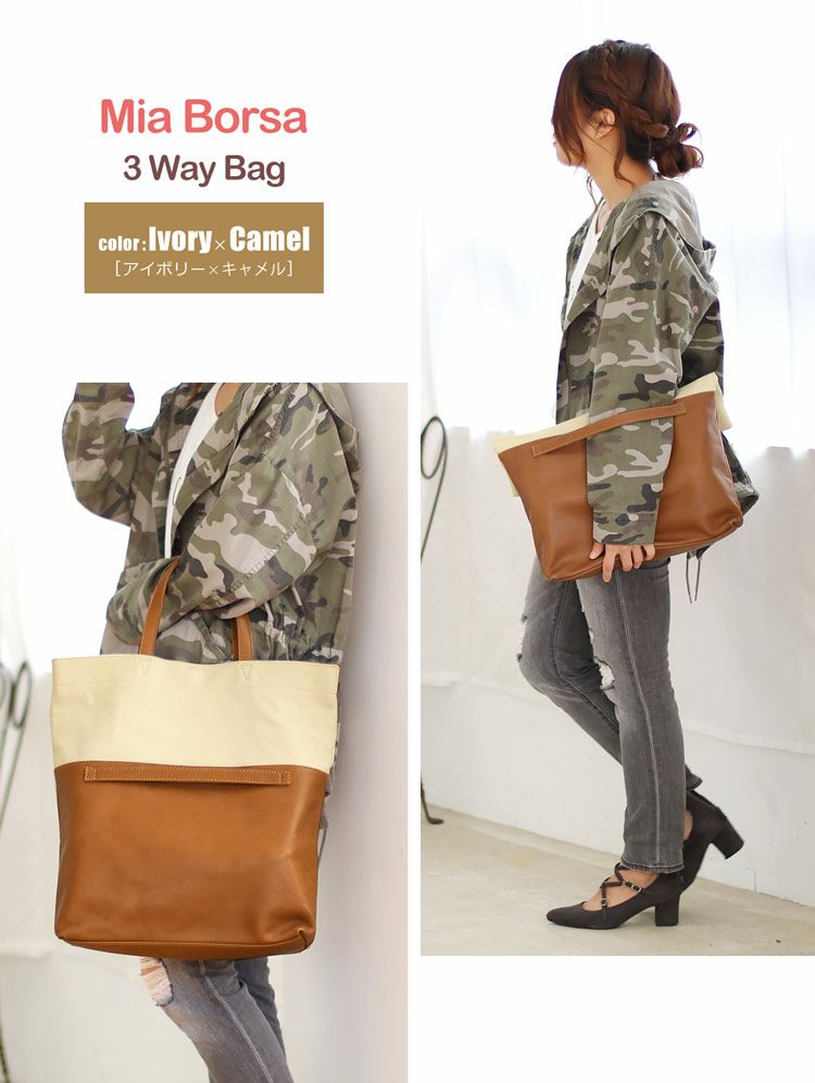 Mia Borsa トートバッグ レディース 本革 ブランド 3way クラッチ トートバッグ ハンドバッグ a4 バイカラー レザー 牛革 カジュアル ネイビー ベージュ ブラウン プレゼント ギフト 通学 ギフト ladiesbag mensbag