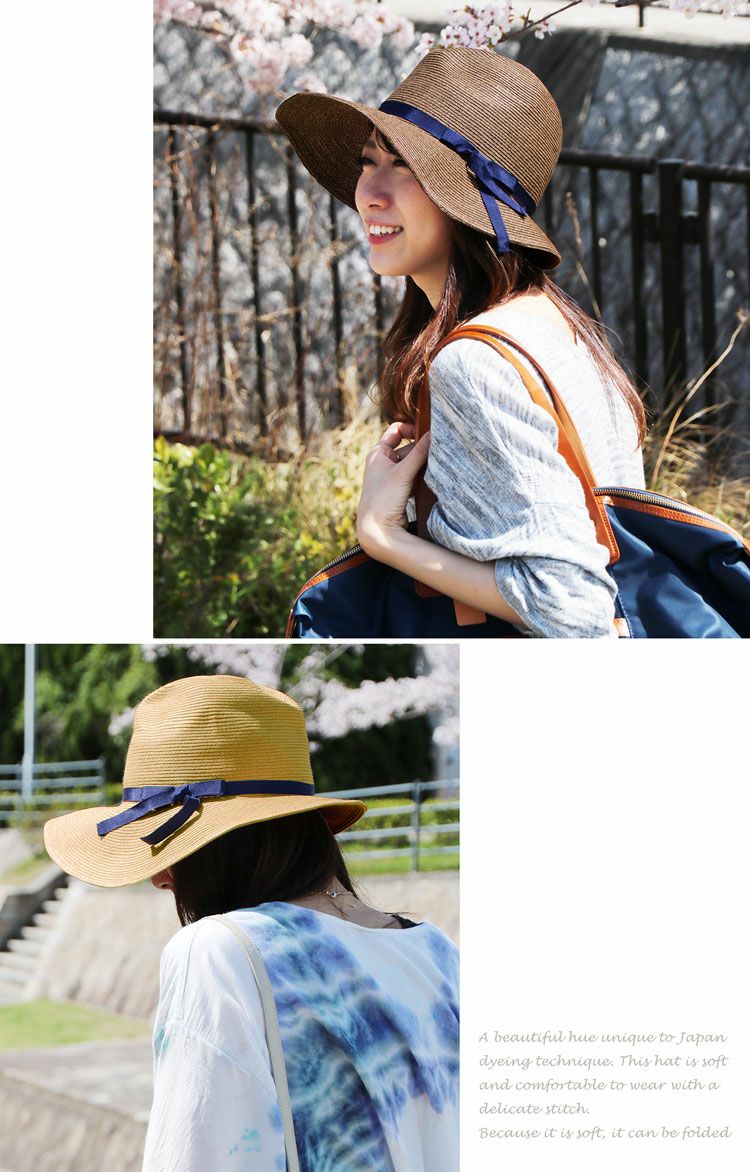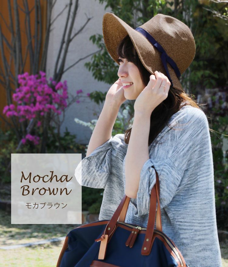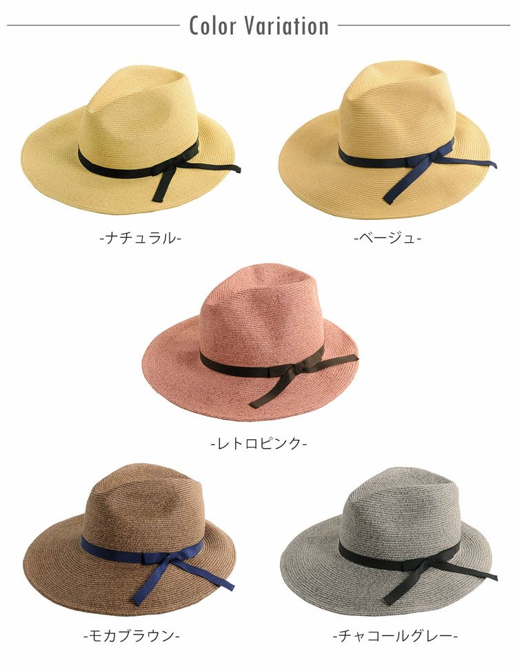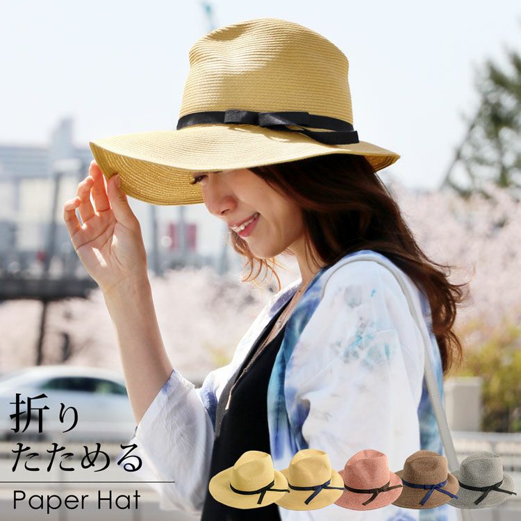ペーパーハット 中折れ帽子 春 夏 つば広 小顔効果 サイズ調節可能 折りたためる 日よけ帽子 天然素材 ナチュラル/ベージュ/レトロピンク/モカブラウン/チャコールグレー プレゼント ギフト