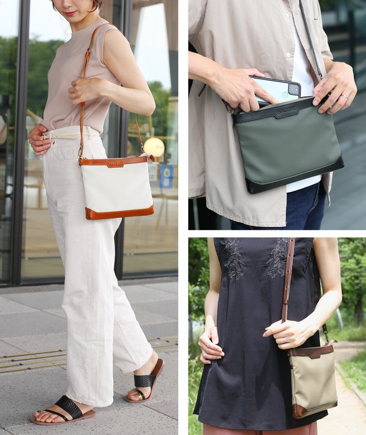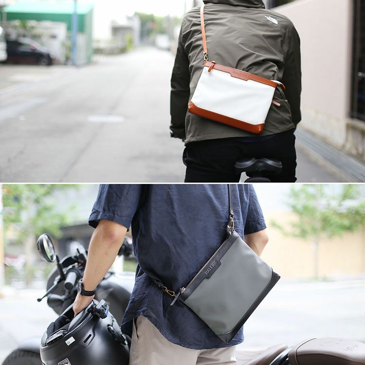 ■大人が持ちたくなる! お洒落でアクティブなサコッシュ。 ※傷に強いのであって全くつかないものではございません。 キャンプや公園に行ったら気を付けていても枝で引っかけたり、 鍵と接触して傷がついてしまった! などの経験はありませんか? いつでもたくさん使いたいけどアクティブに活動すると傷だらけ・・・ とっても悲しいですよね。 でも安心してください!このバッグで使用している素材は・・・ 鍵でひっかいてもみてもご覧の通り傷が目立ちません! 本体部に使用されているこの素材なら水を弾くから汚れてしまってもハンカチでサッと拭き取るだけ。 ※長時間置いた状態にしますとシミになる場合がございます。汚れてしまった場合水拭き後乾いた布で拭きとってください。 色んな素材で試作を繰り返しましたが、 なかなか理想とする素材とは出会えませんでした。 構想から1年半!やっと理想とする素材を見つけることができました。 それは、高純度のウレタン樹脂を使用した強化ポリウレタン! マットでゴムライクな表面は、まるでウエットスーツのような質感で、 検査機関で様々な試験を通ったタフな素材。 摩擦による傷がつきにくい耐摩耗性。 汚れもサッと拭き取れる耐水性。 夏の日差し・日焼けにも強い耐光性。 PU独特の経年による劣化(ひび割れ、べたつき、変色等)に対する耐久性もあります。 仕切りのないメインポケット 【内側】 ・フリーポケット×2 ・ファスナーポケット×1 【外側】 ・ファスナーポケット×1 お出かけに必要なアイテムをサクサク収納。 見た目以上に収納力があり、 長財布やA5サイズのノートなども入る大きさなので使い勝手も抜群です。 ショルダーベルトは金具で簡単に取り外し。 7段階で調節可能なデザイン。 ■サコッシュは流行アイテムから定番アイテムへ。 サコッシュとは元々自転車乗りや登山家が愛用していた軽量のショルダーバッグ。 その無駄の無いデザインや機能性から今やトレンドの枠を超えた "手放せない"アイテムとして注目されています。 近年のキャッシュレス化の流れから、人々の持ち物は小さく少なくなっているため、 軽量かつ小型なサコッシュは、今の時代とニーズに合ったバッグであると言えます。