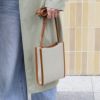 ショルダーベルトと、バッグの端は滑らかな肌触りの牛革を使用しています。本革ならではのシボがあり、使い込むほどに味わい深く変化していきます。丈夫で耐久性もある優れた素材です。