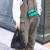 〇ポーチ裏面にあるファスナーポケットの中にはエコバッグが入っていて、コンビニなどでのお買い物にぴったり。