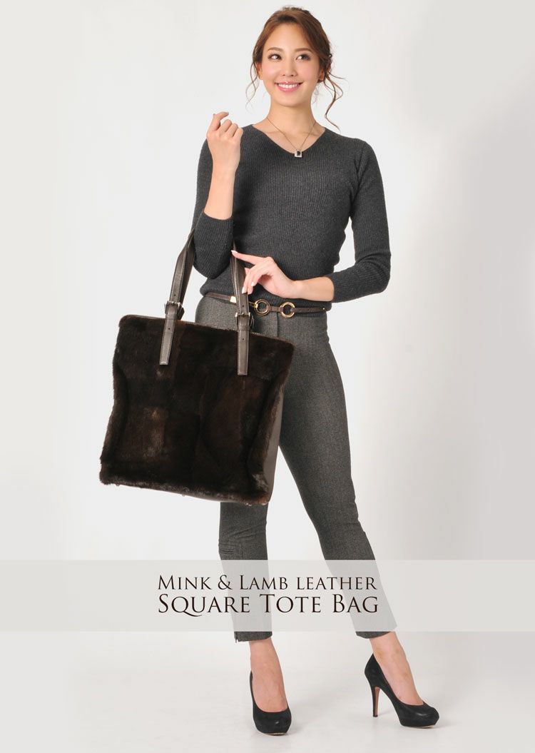 | 商品名:ミンク & ラムレザー コンビネーション トートバッグ / レディース |