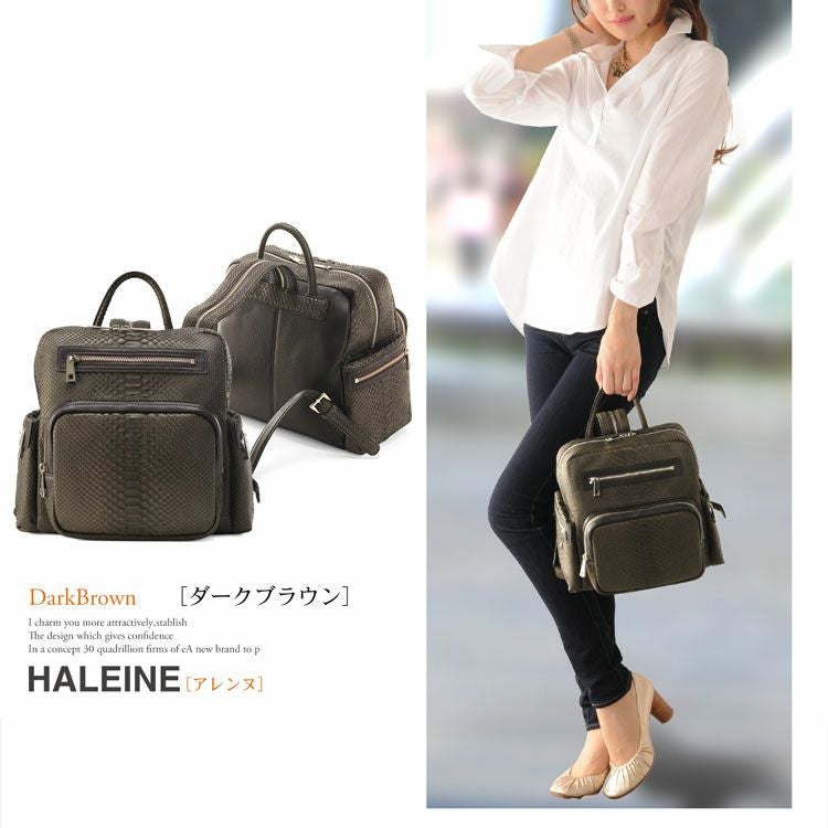 HALEINE ダイヤモンド パイソン リュックサック ワンショルダーバッグ レディース おしゃれ 大人 かわいい レザー 全5色 旅行 軽量 大容量 お出掛け 本革 革 通勤 女性 プレゼント ブランド ギフト ladiesbag mensbag