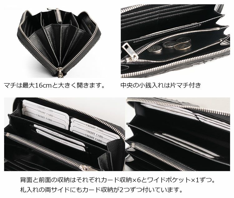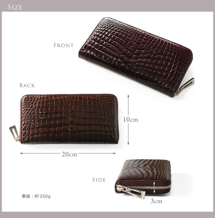 クロコダイル 長財布 シャイニング 加工 センター取り 一枚革 メタル ラウンド ファスナー レディース 4FA