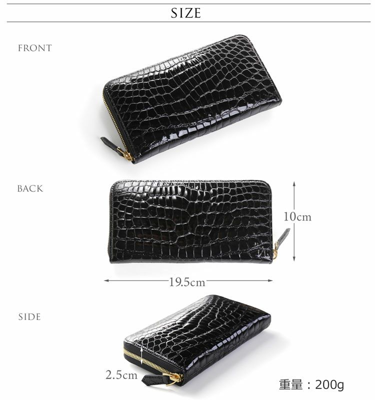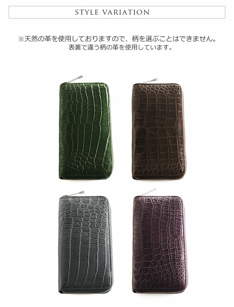 HALEINE クロコダイル 日本製 レディース 長財布 ラウンドファスナー シャイニング マット 加工 一枚革 センター取り