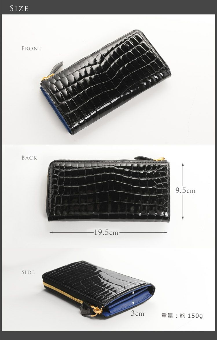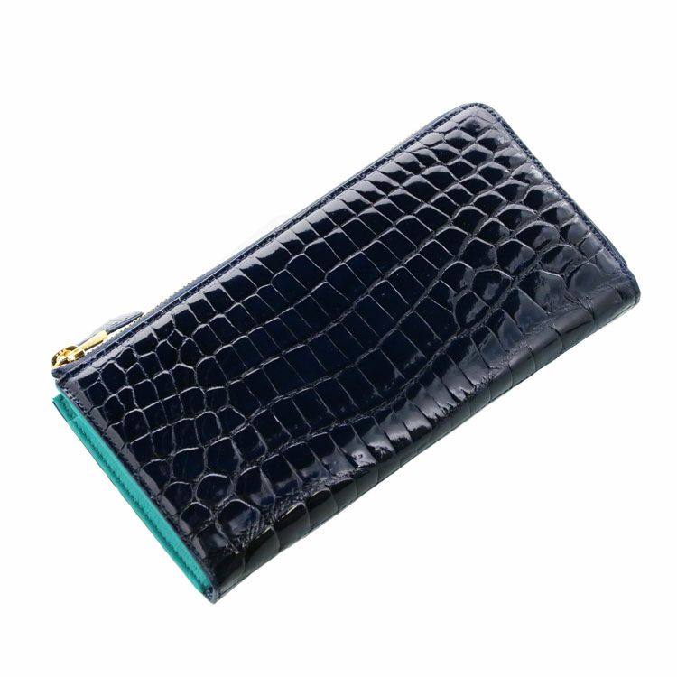 クロコダイル L字ファスナー 長財布 レディース シャイニング 加工 ゴールド金具 全20色 4FA