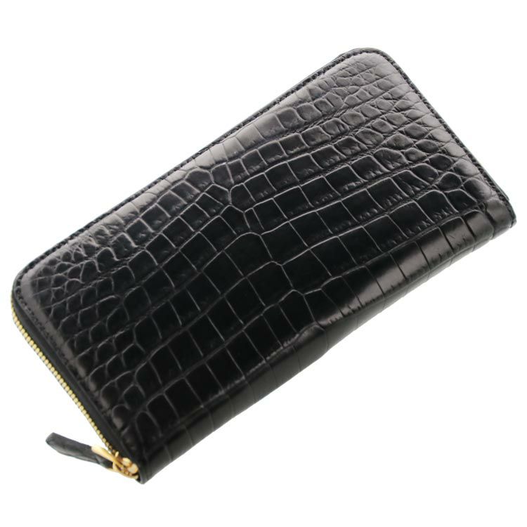 クロコダイル ラウンドファスナー メンズ 長財布 シャイニング加工/一枚革/センター取り//真鍮チャーム 『クロコダイル保証書付き』 4FA