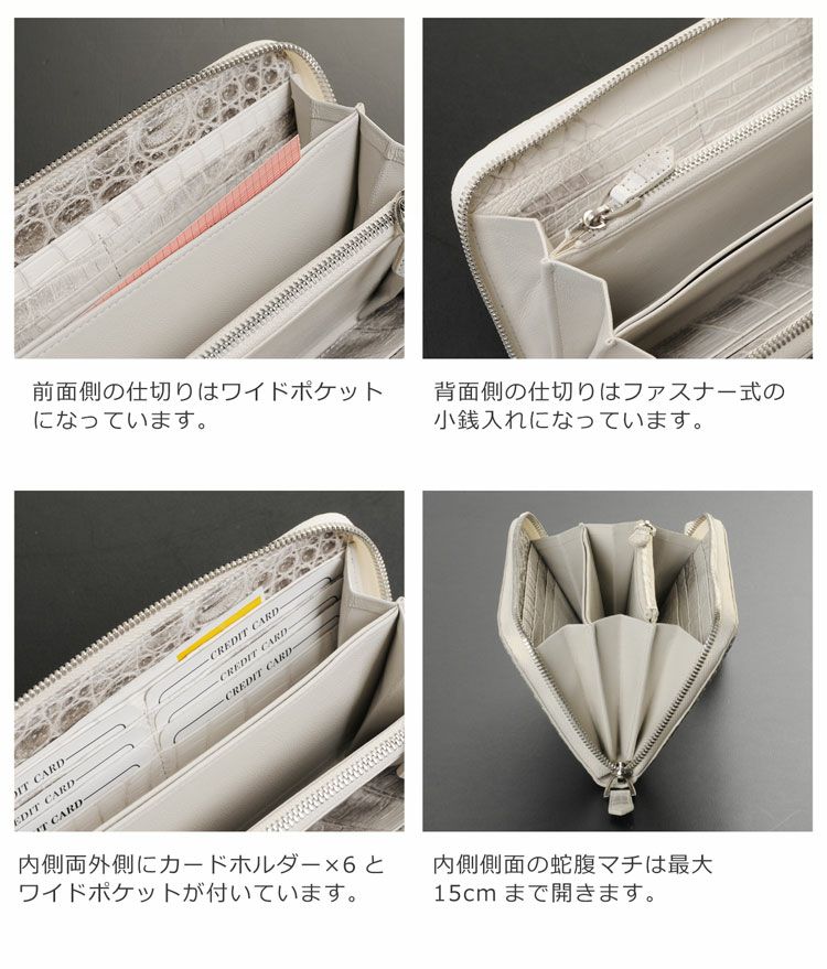 クロコダイル 長財布 マット 加工 ラウンドファスナー アウトポケット付き レディース 全9色 4FA