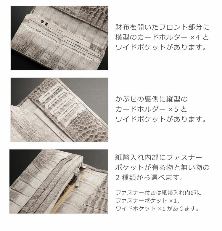 クロコダイル 長財布 レディース 日本製 かぶせ 背面L字ファスナー シャイニング 加工 全13色 4FA