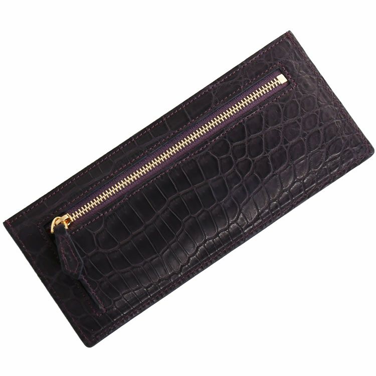 クロコダイル 薄型 コンパクト 長財布 レディース ポロサス スモールクロコダイル マット 加工 内側 プリント 全16色 4FA