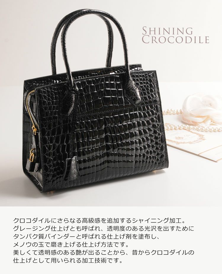 スモール クロコダイル 2WAY ハンドバッグ センター取り シャイニング加工 『クロコダイル保証書付き』 4FA