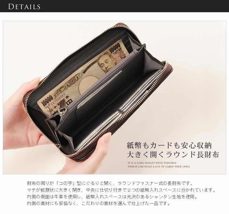 アートのように仕上げた スペインレザー ダイヤモンド パイソン ラウンドファスナー 長財布 全10色 4FA【ネコポスで送料無料】