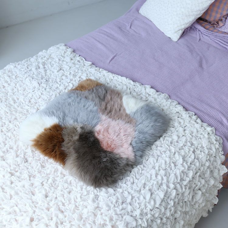 ムートン座布団 ムートンクッション チェアマット カークッション パッチワーク チェアラグ ラグ ファー インテリア スクエア 椅子
