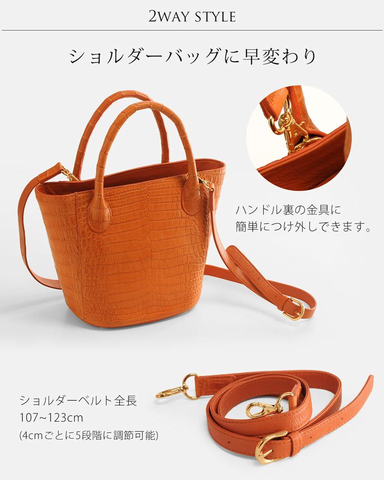 ナイル クロコダイル ハンドバッグ マット 加工 センター取り 2WAY / レディース 『クロコダイル保証書付き』 4FA