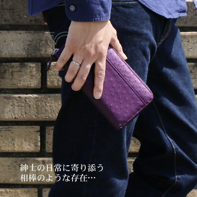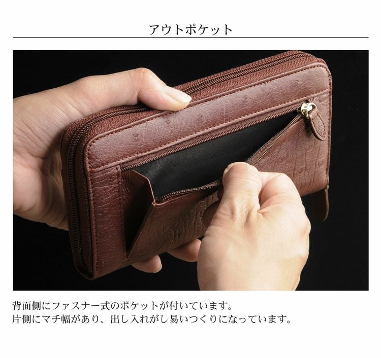 オーストリッチ レッグ 長財布 ラウンド ファスナー フルオープン 4FA【ネコポスで送料無料】