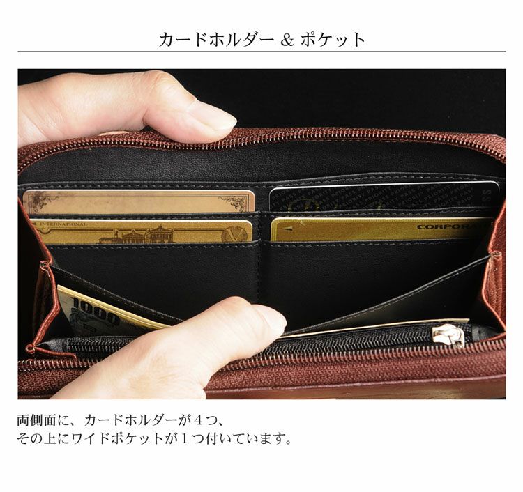 クロコダイル 長財布 マット 加工 ラウンドファスナー アウトポケット付き レディース 全9色 4FA