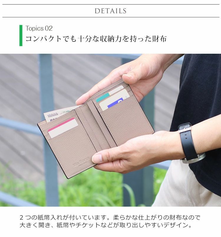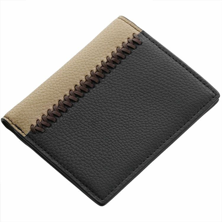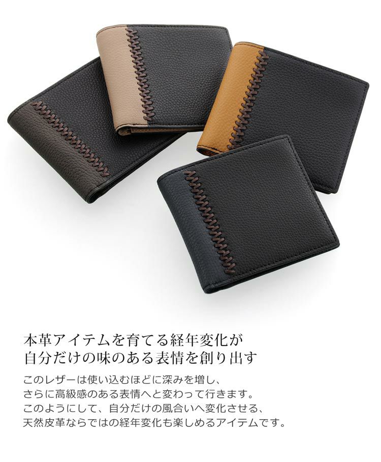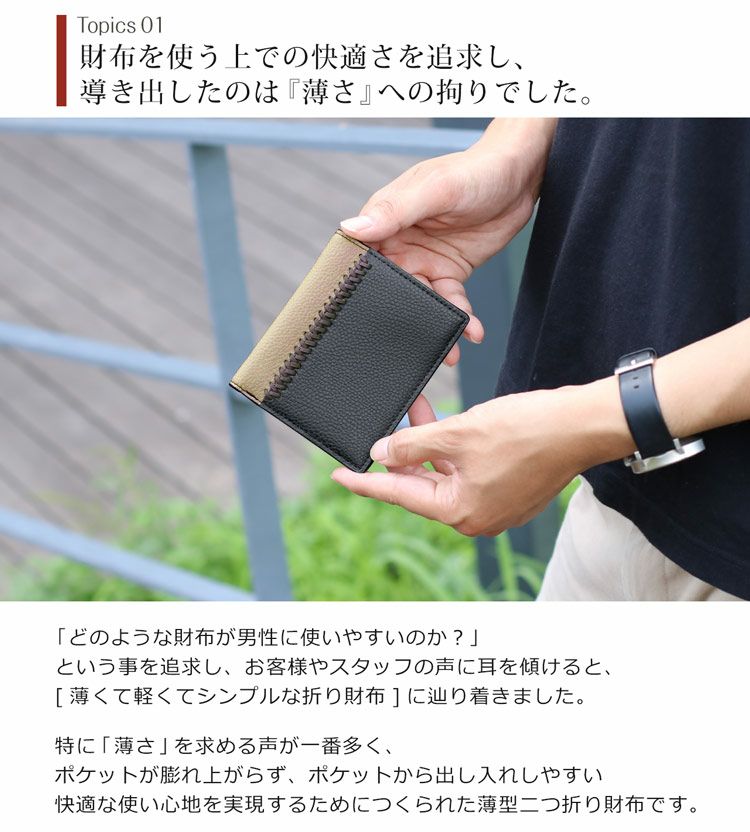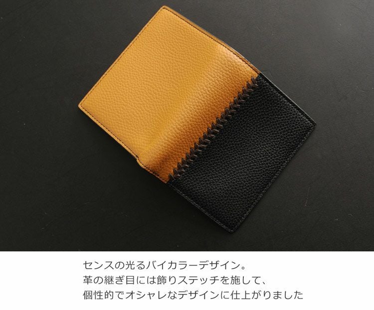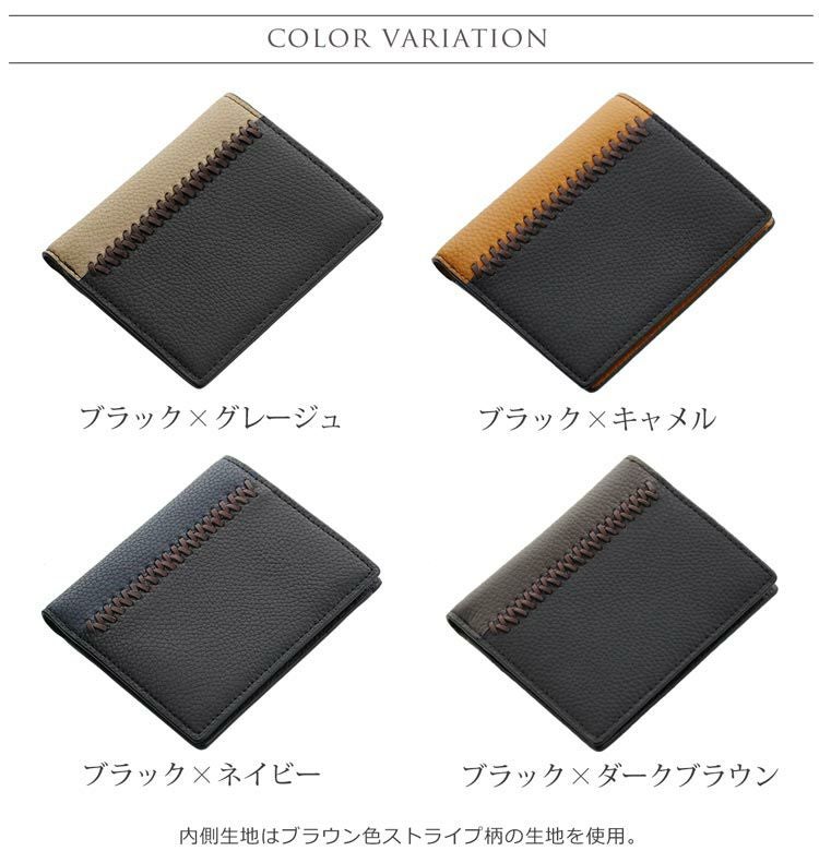 牛革 コンパクト 折り財布 両 カード入れ バイカラー ステッチ デザイン 軽量 縦型 薄型 ミニ【ネコポスで送料無料】 4FA