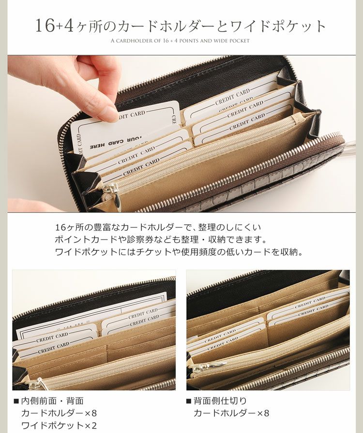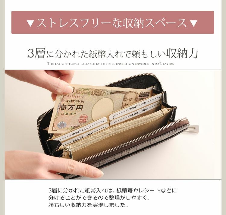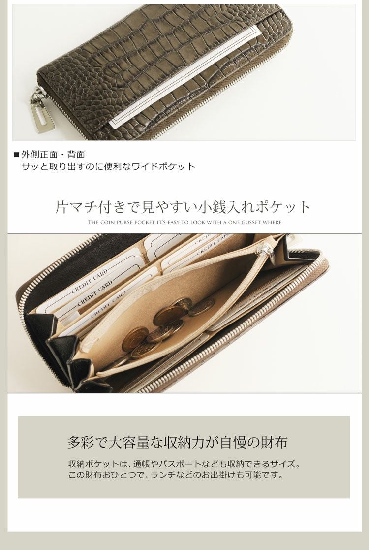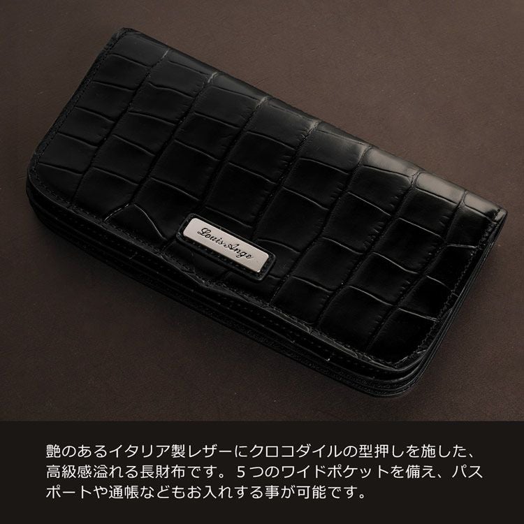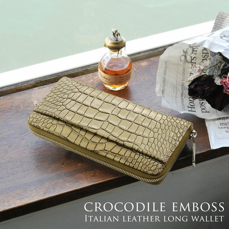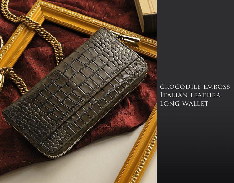 HALEINE クロコダイル型押し 牛革 L字ファスナー 長財布 4FA