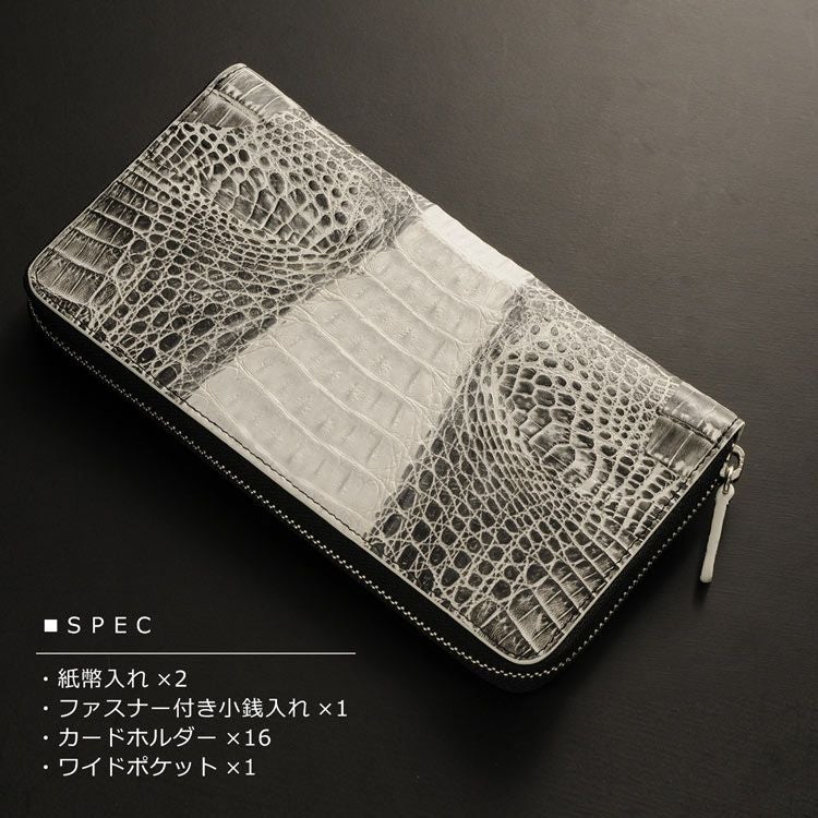 クロコダイル 長財布 シャイニング 加工 一枚革 センター取り レディース 真鍮 チャーム 全20色 『クロコダイル保証書付き』 4FA