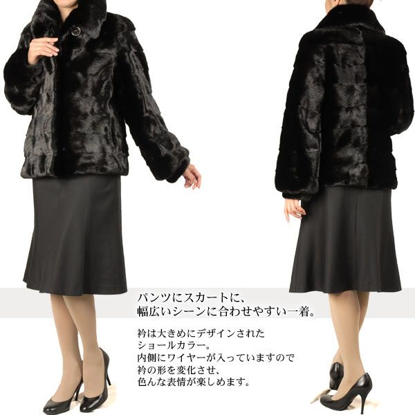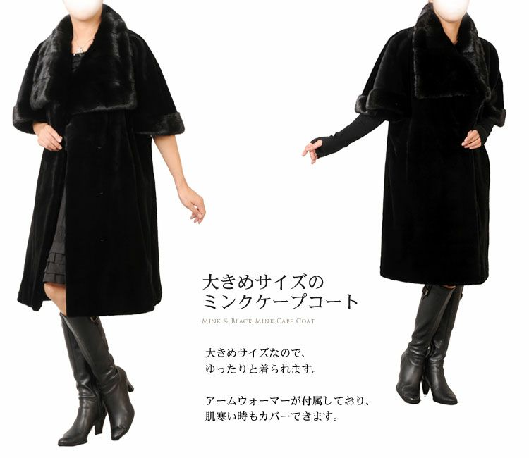 シェアードミンク ケープコート ブラックミンク トリミング 7F