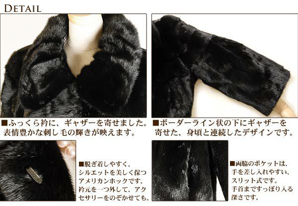 【1点限り】 スカンブラックミンクコート テーラードカラーデザイン 7F