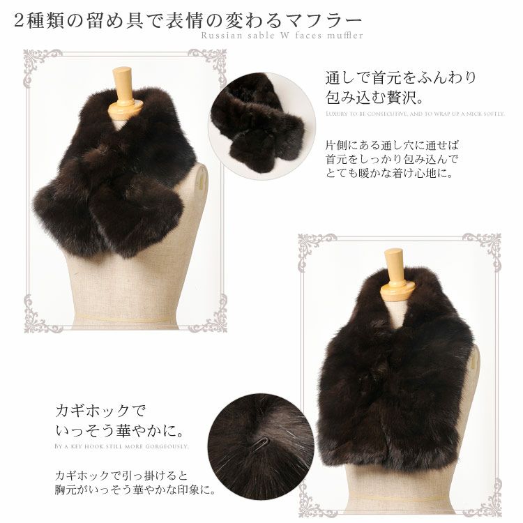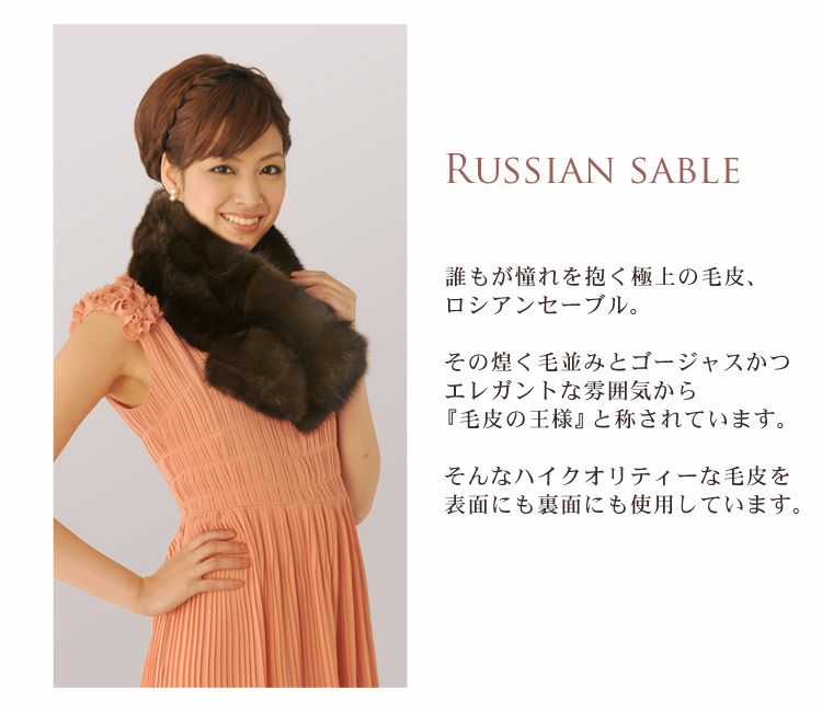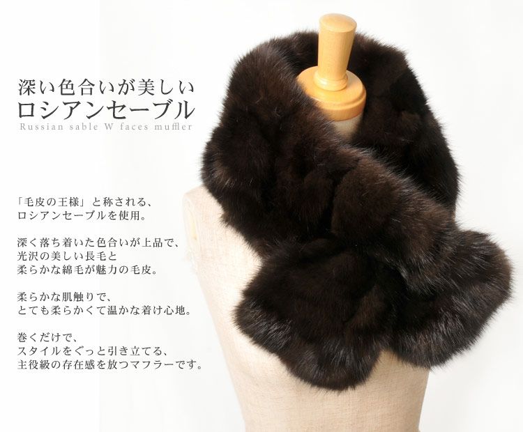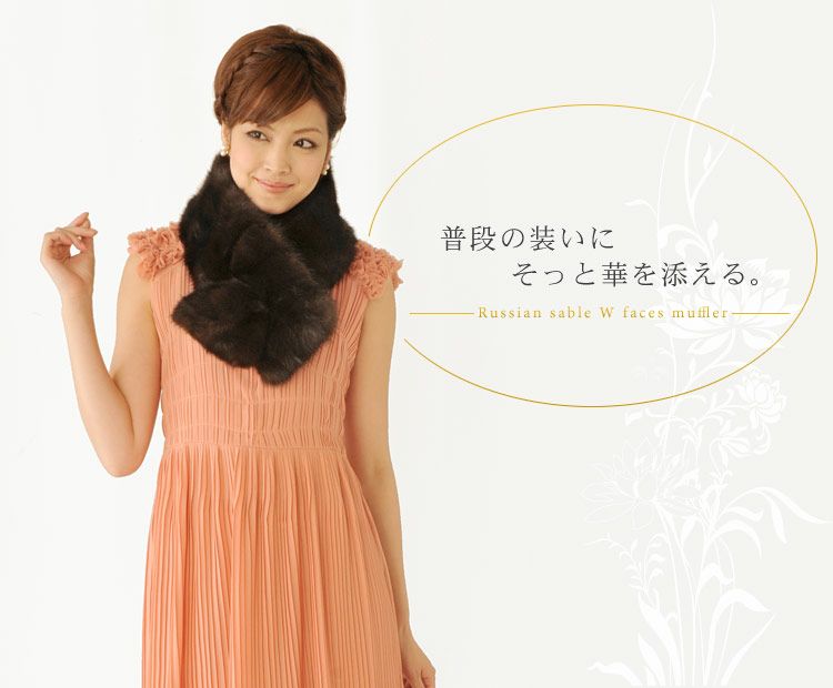 毛皮の王様と称されるセーブルをつかった高級感あるファーマフラー。深みのある色身、セーブルが持つ高級感が身につける人のスタイルに、大人の上質感をプラスしてくれます。