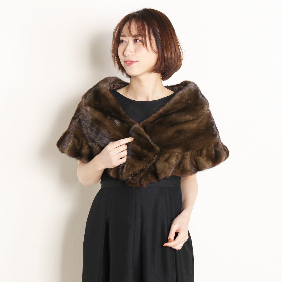 ミンク ケープ フリル デザイン スカンブラウン ブラック 7F