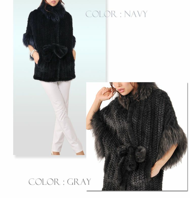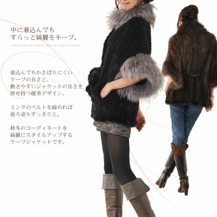 ミンク 編み込み ケープ ジャケット ラクーン トリミング (No.01000366) |