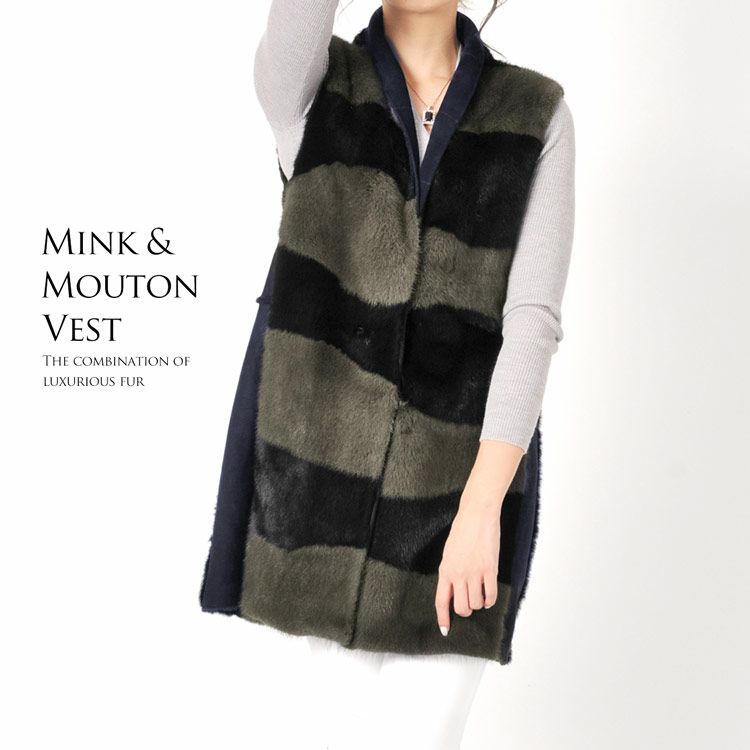 | 商品名:ミンク & ムートン ベスト ダブルフェイス 着丈85cm / レディース |